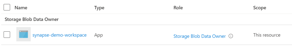 - Assign the Synapse Workspace (system assigned) Managed Identity at least the ‘Storage Blob Data Reader’ role on the storage account via the ‘Access control (IAM)’ tab