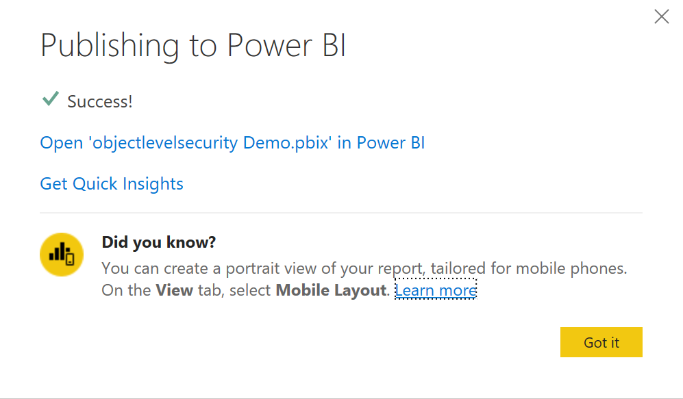 I’m still not sure why I can’t change the security settings before publishing it to a workspace. Maybe it isn’t converted to a tabular model before? Feel free to let me know if you got the answer!