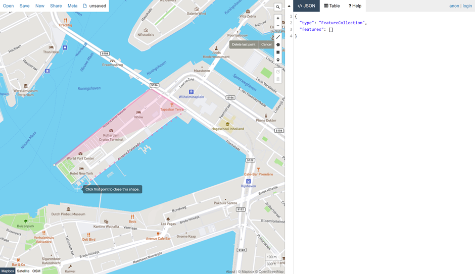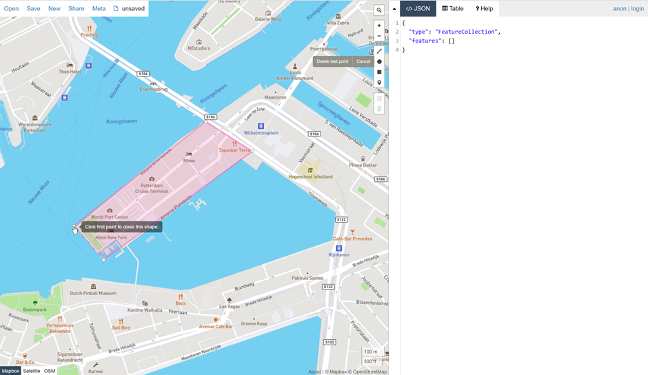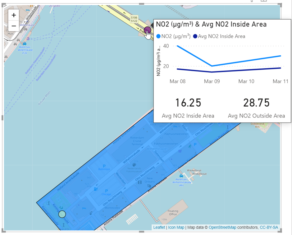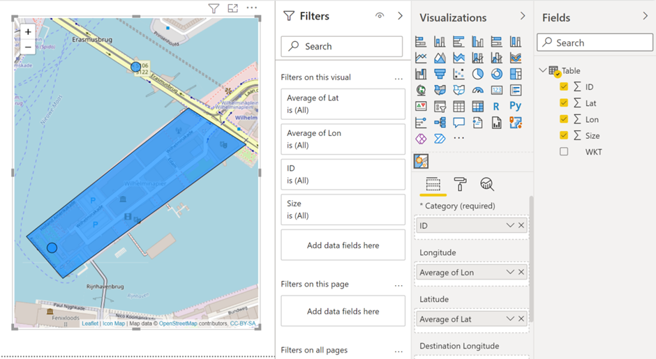 When we close the shape, you see the coordinates on the right side and as you can see, the first and the last one are the same. This way we have a full shape (in this case a part in Rotterdam) which we can use as our geofence. We are going to need these coordinates but in a slightly different way. We are going to save them as a WKT String. In Power BI we are going to use the custom visual Icon Map by James Dales. I have downloaded the 3.1.15 version, which is while writing this article the latest version.
