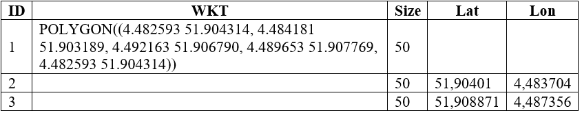 The table with the polygon area looks like this: