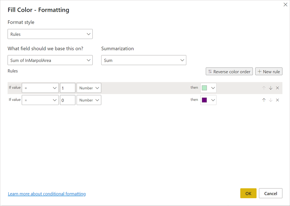 The creation of the visual is still the same, but what we can do now is apply conditional formatting to our coordinates: