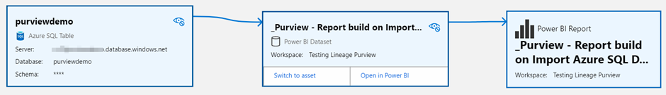 Now after creating a report on this specific table, and scanning all the assets again, you would expect to see this table connected to the dataset, and the dataset connected to the report.