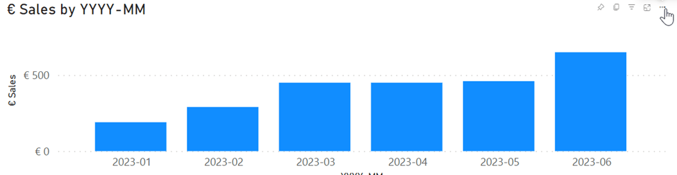 There are two Bar charts, a line chart, a table, a matrix, and two cards. An “old” one and the new shiny one. After publishing it to my Fabric-backed workspace, I can open the report in the Power BI Service/Fabric portal.