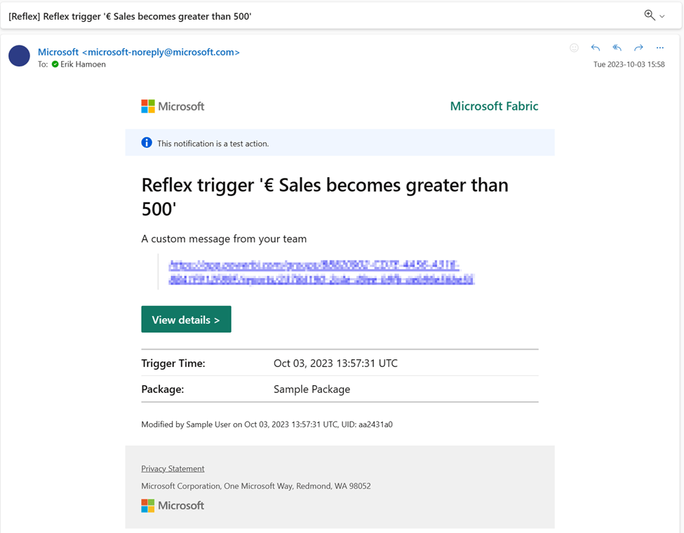 And that’s it for Data Activator! Let’s add some data, and see the Teams message and e-mail we will get!