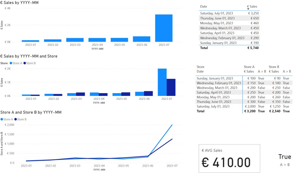 Here’s the new data, 2000 euros for Store A, 1250 for Store B.