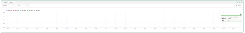 Because the data is sliced by two dimensions (YYYY-MM and Store) it cannot create a trigger. This automatically also counts for the line chart below it. Or does it?