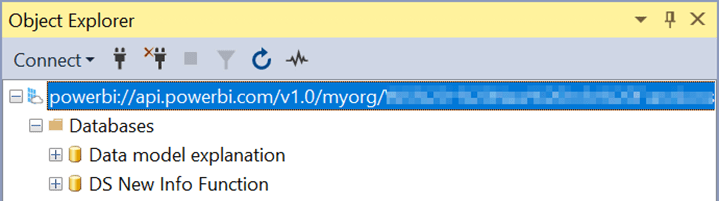 When you go back to SSMS and create a new connection to the XMLA endpoint, you can find your databases listed there: