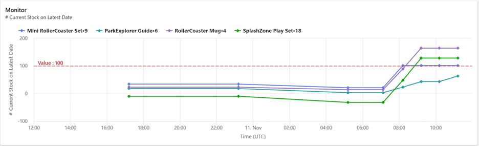 For a couple of hours, the data remained the same. Now note that if a value doesn’t change, Activator doesn’t act on it. If you notice the green line, you can see it goes down a bit, which means sales have been made. Later, the activator ran and was triggered. Making sure we bought new products.